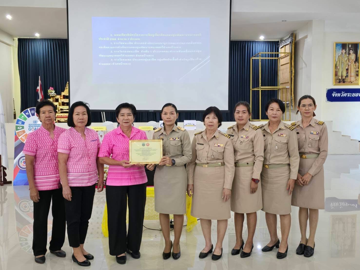🥇1. รางวัลชนะเลิศ ประเภทสำนักงานเลขานุการคณะกรรมการกลั่นกรองและติดตามการดำเนินงานกองทุนพัฒนาบทบาทสตรีอำเภอบ้านฉาง