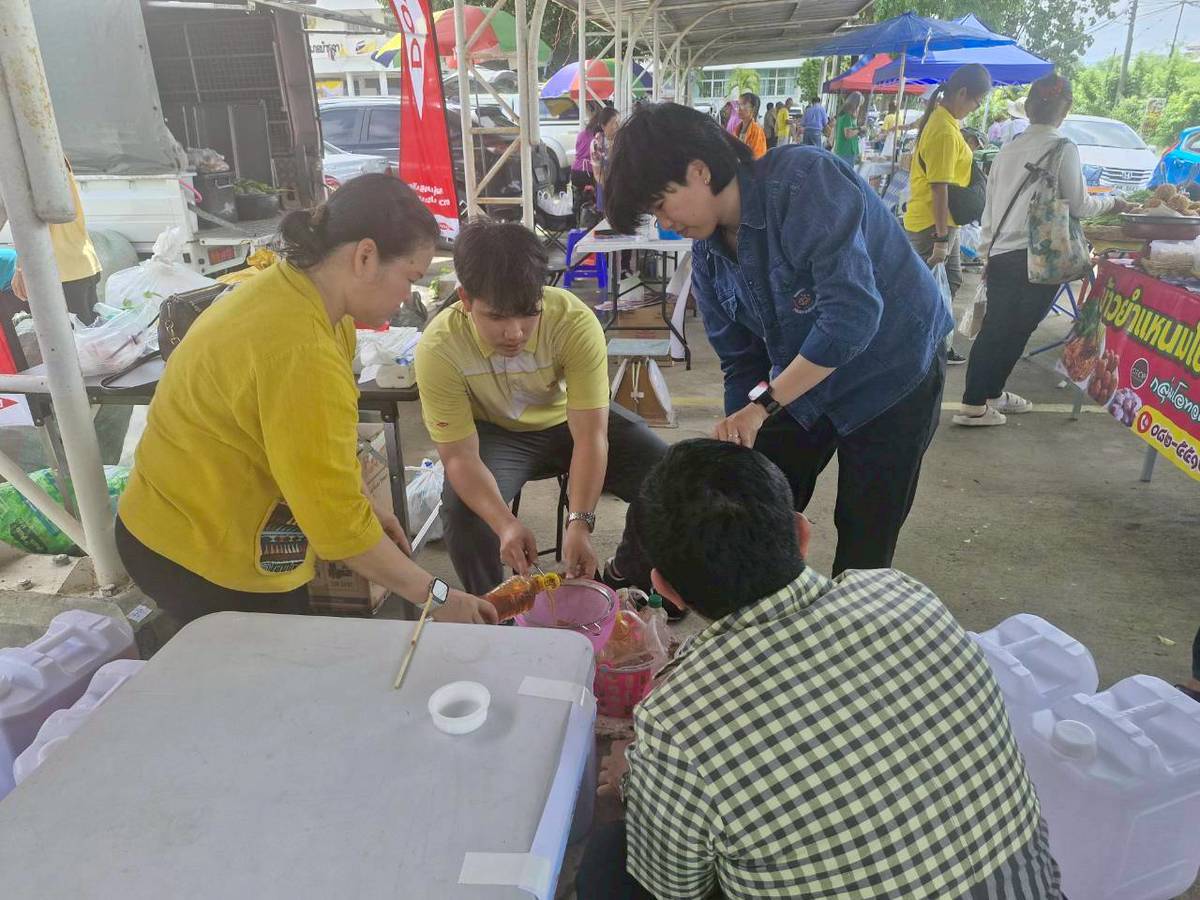 ✨ นายประภาศ ขุนคต พัฒนาการอำเภอบ้านฉาง พร้อมด้วยเจ้าหน้าที่พัฒนาชุมชน ร่วมกับผู้นำอาสาพัฒนาชุมชนอำเภอบ้านฉาง ดำเนินกิจกรรมรับซื้อน้ำมันเก่า ภายใต้โครงการ "ทอดไม่ทิ้ง" ซึ่งบูรณาการร่วมกับกิจกรรมตลาดบ้านฉัน@บ้านฉาง